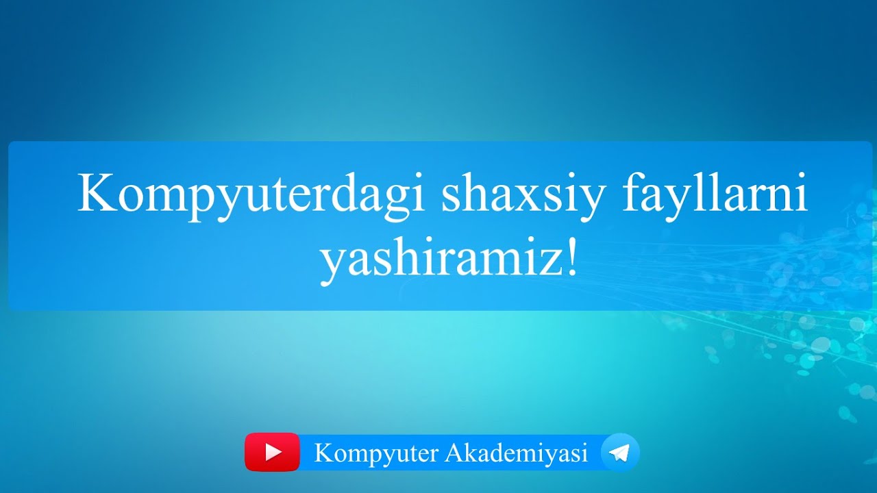 Kompyuterdagi shaxsiy fayllarni yashiramiz!