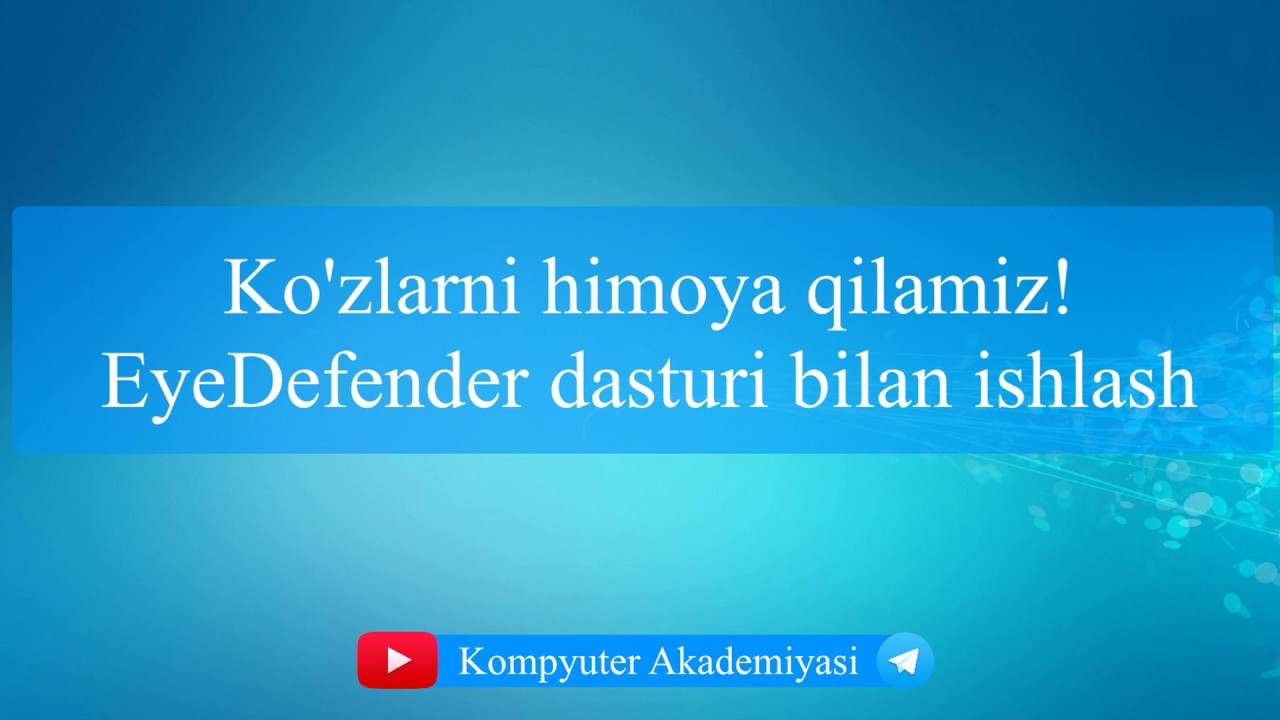 EyeDefender dasturi. Kompyuterda ishlash paytida ko'zlarni asrash!