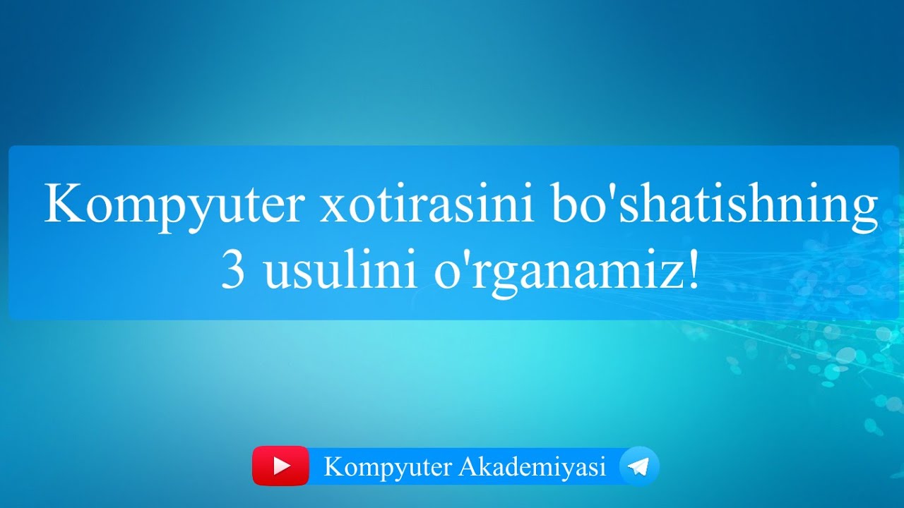 Kompyuter xotirasi to'ldimi? Kompyuter xotirasidan joy ochishni 3 usuli!