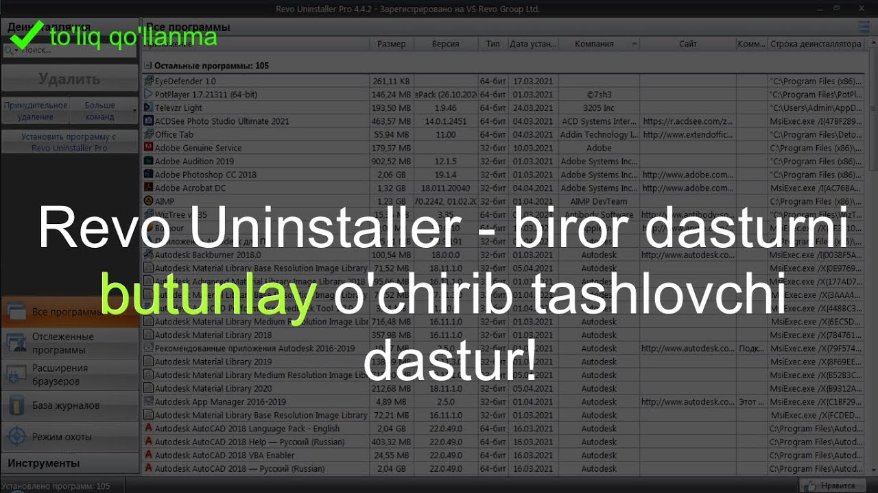 Revo Uninstaller - biror dasturni to'liqligicha o'chiruvchi dastur