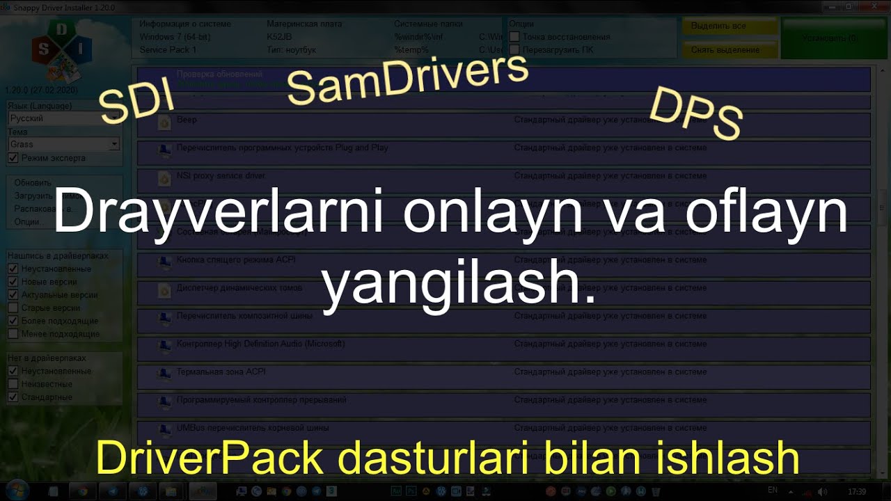 Drayverlarni onlayn va oflayn yangilash. DriverPack dasturlari bilan ishlash.